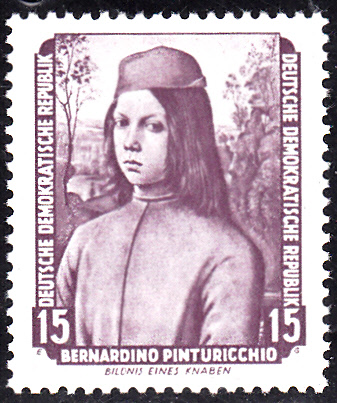 In der Markenserie "Von der Sowjetunion zurückgeführte Gemälde der Dresdner Gemäldegalerie" erschien eine Marke zu 15Pf (MiNr 506), die das Gemälde "Bildnis eines Knaben" von Pinturicchio zeigt.