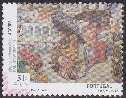 In einer Serie "Zeitgenössische Gemälde" erschien in Portugal Azoren auch eine Marke (MiNr 471 A) mit dem Gemälde "Die Auswanderer" von Domingos Rebelo.