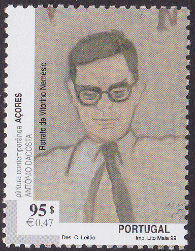 In einer Serie "Zeitgenössische Gemälde" erschien in Portugal Azoren auch eine Marke (MiNr 472 A) mit dem Gemälde "Porträt des Vitorino Nemésio" von António Dacosta.