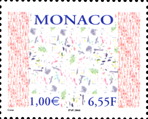Aus einer Serie "Gemälde im Fürstentum tätiger Künstler zum Thema 'Monaco und das Meer'" stammt diese Marke aus Monaco (MiNr 2492) mit einem Werk von Louis Cane.