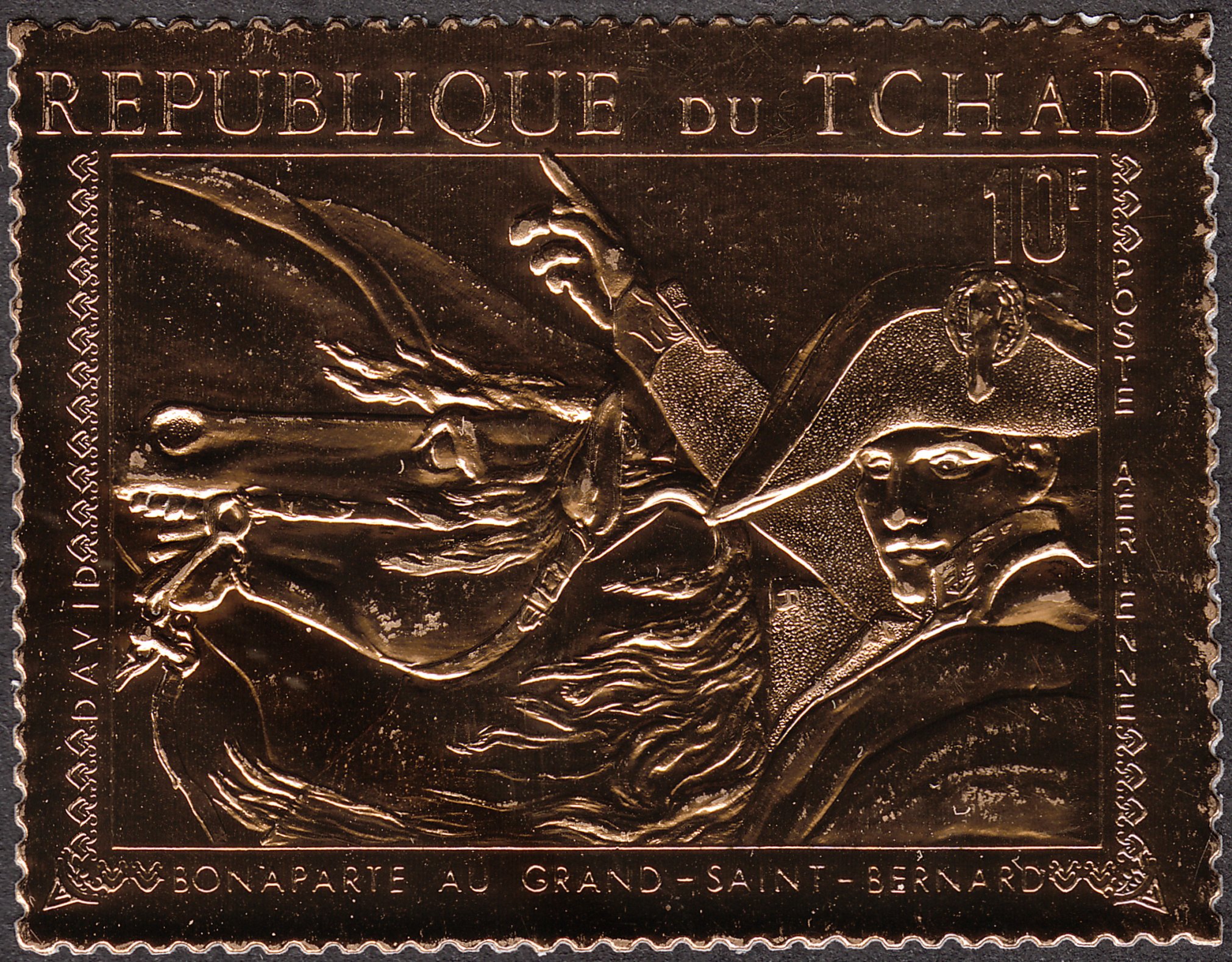 Philatelistisch dokumentieren kann man dieses aussergewöhnliche Gemälde mit einer ebenso aussergewöhnlichen Briefmarke aus der zentralafrikanischen Republik Tschad, das einen Ausschnitt aus diesem Gemälde zeigt, ausgeführt auf einer Goldfolie: