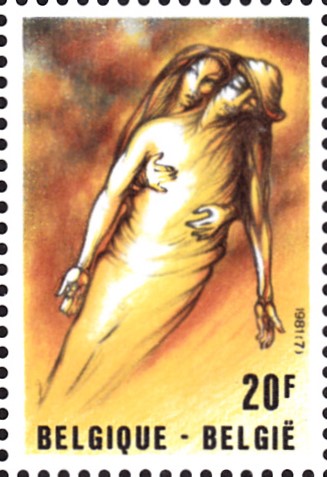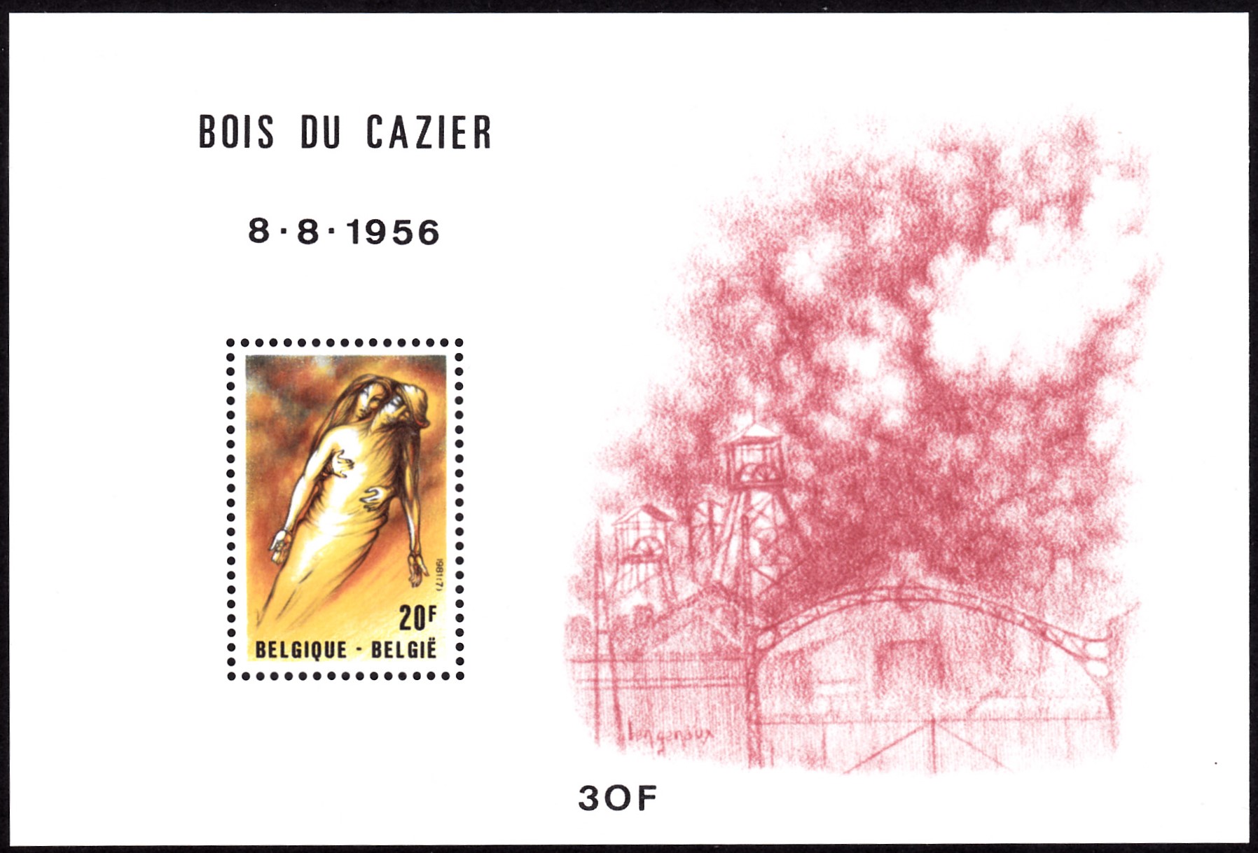 Die Blockausgabe (MiNr Block 51) zum 25. Jahrestag der Bergwerkskatastrophe im "Bois du Cazier" in Marcinelle enthält eine Marke (MiNr 2070), die das Gemälde "Pietà" von Ben Genaux zeigt.