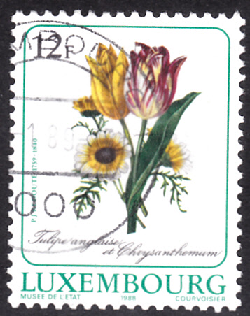 Auf dieser Marke aus Luxemburg (MiNr 1192) sehen wir Tulp und Chrysanthemen nach einem Gemälde von Pierre-Joseph Redouté.