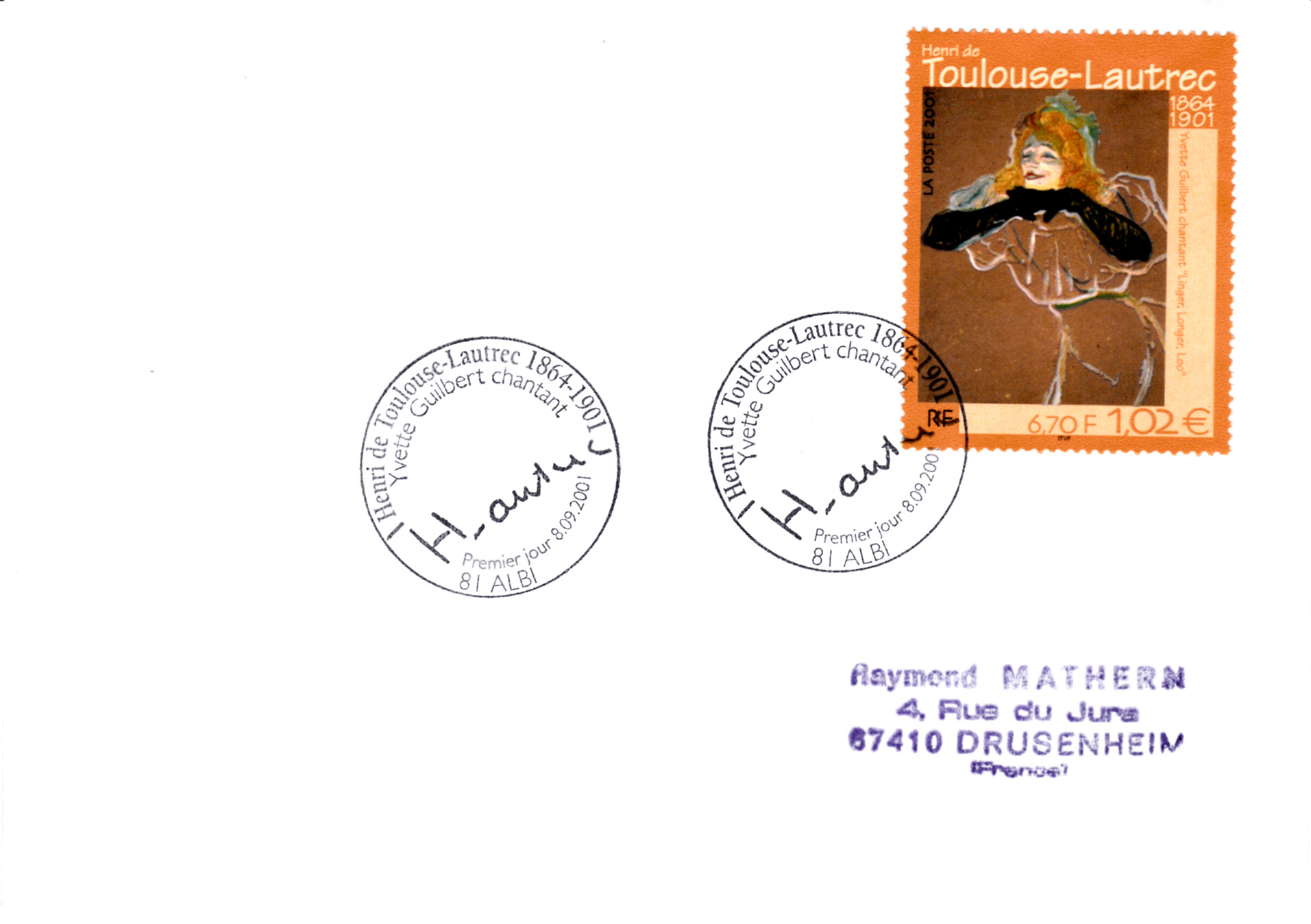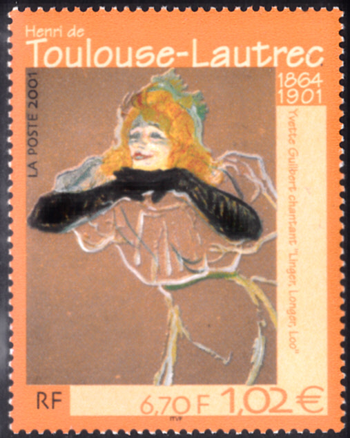 Henri de Toulouse-Lautrec(geb. 24. November 1864 in Albi; gest. 9. September 1901 auf Schloss Malromé, Gironde), ein französischer Maler und Grafiker, fertigte vor allem Farblithographien und besonders Plakate, die er unter anderem für das Pariser Varieté Moulin Rouge am Montmartre anfertigte, machten ihn berühmt. Auf dieser Marke aus Ungarn MiNr 2507 ist sein Gemälde "Die Damen" aus dem Jahre 1893 abgebildet.