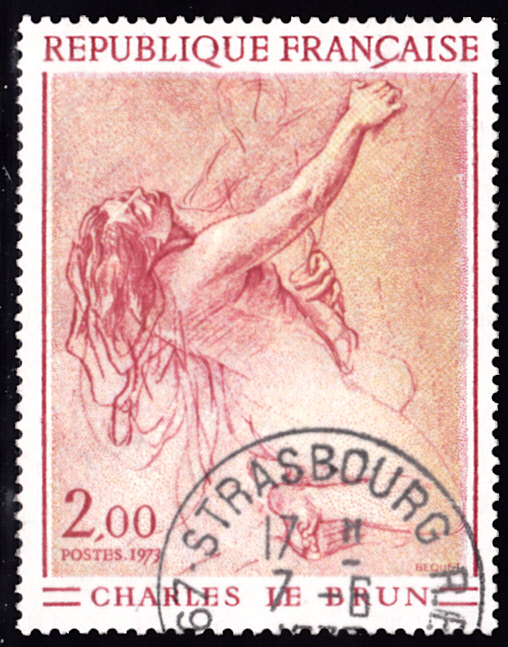 Auf einer Marke aus Frankreich (MiNr 1828) wird das Gemälde "Kniende Frau" von Charles Le Brun gezeigt.