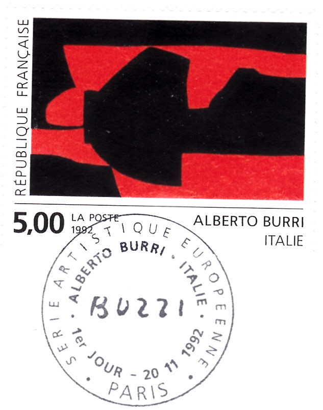 In Frankreich ist eine Marke (MiNr 2928) mit einem Abstrakten Gemälde von Alberto Burri erschienen.
