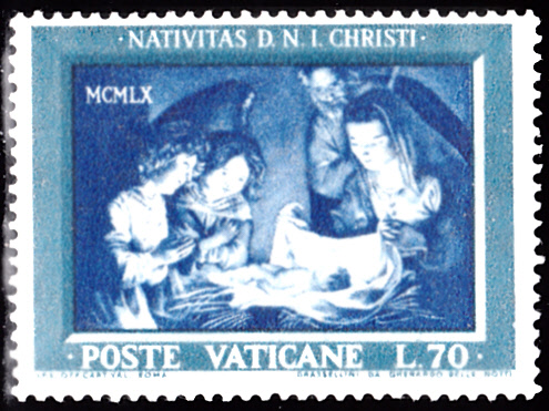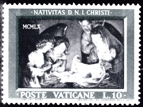 Im Vatikan sind 1960 drei bildgleiche Marke als Weihnachtsmarken erschienen. Sie zeigen "Die Heilige Familie mit zwei anbetenden Engeln" nach einem Gemälde von Gerrit van Honthorst.