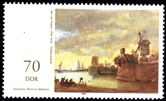 Das Gemälde "Flusslandschaft" von Jan van Goyen sehen wir auf dieser Marke aus der DDR (MiNr 2731).