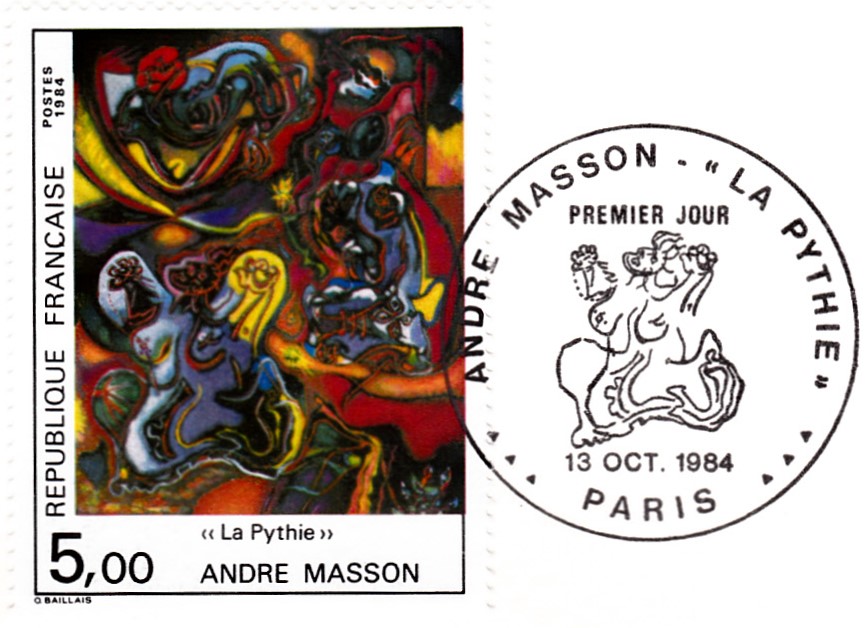 Die französische Post würdigte seinem 1943 entstandenen Werk "La Pythie" = Pythia diese Sondermarke: