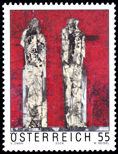 Aus Österreich kommt diese Marke (MiNr 2621) mit einem Gemälde aus dem Zyklus "Homo sapiens" von Valentin Oman.