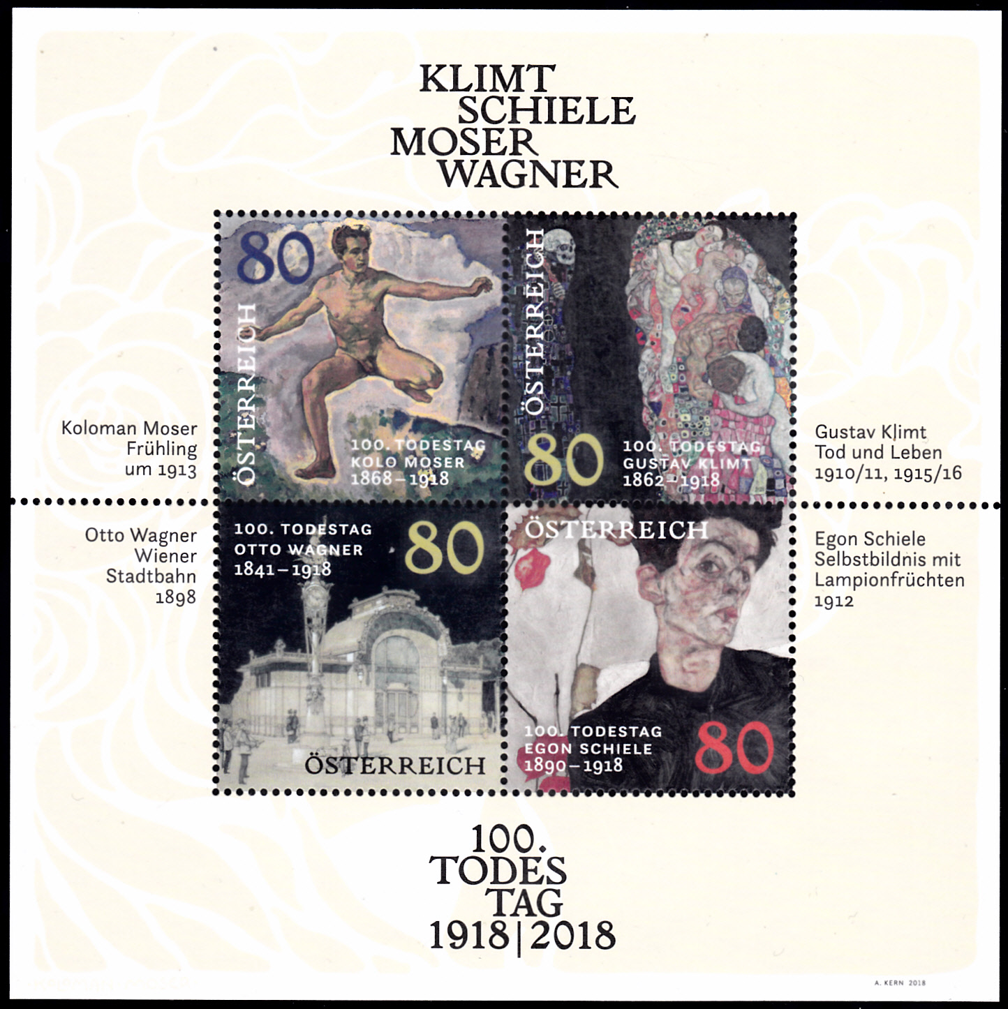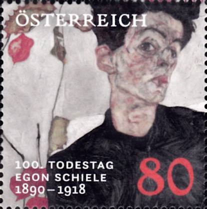 Zum 100. Geburtstag von Egon Schiele verausgabte die österreichische Post eine Marke (MiNr 1992) mit einem Selbstporträt von Egon Schiele.