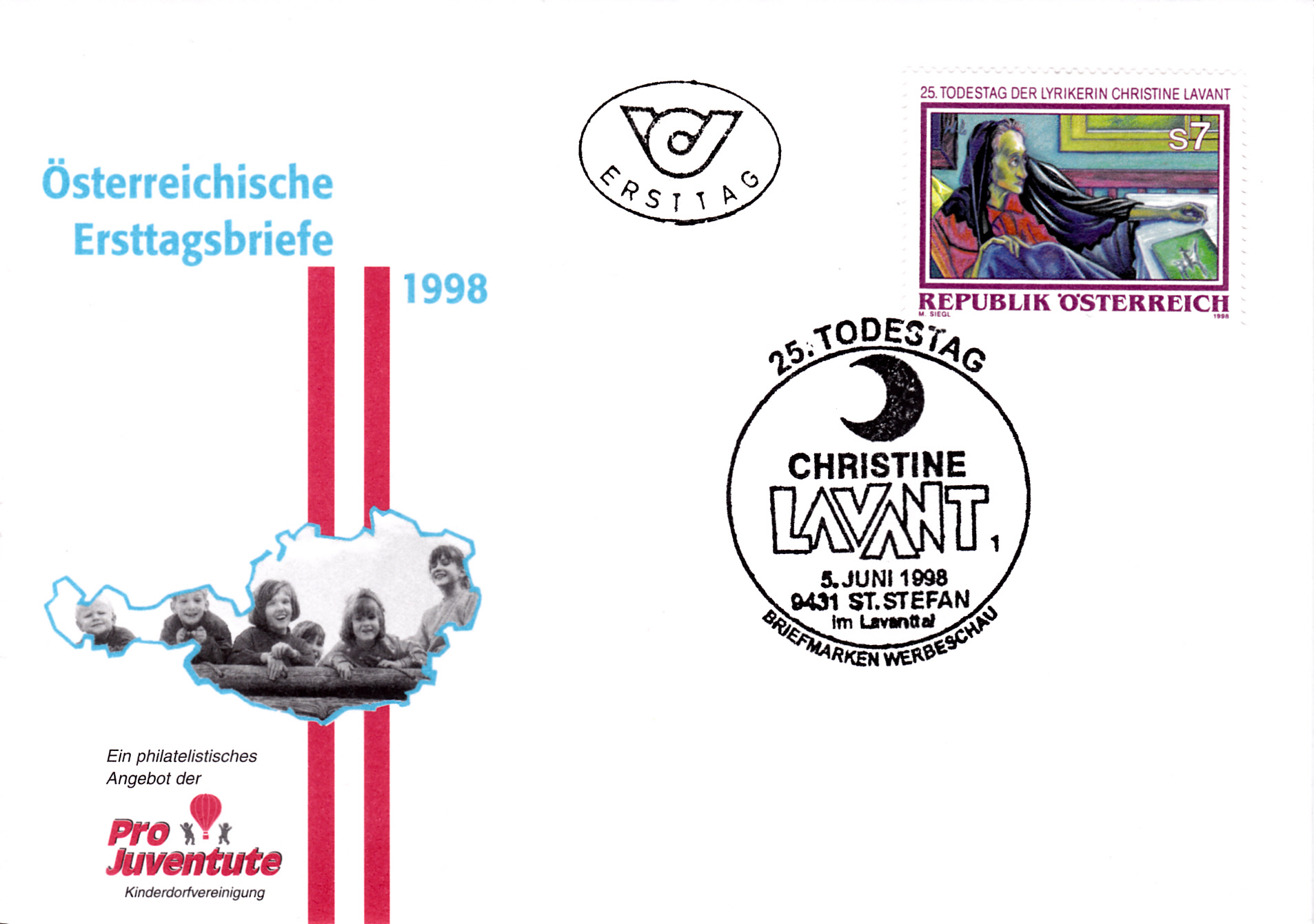 FDC, leider nicht gelaufen, mit einem zum Ausgabeanlass passenden Sonderstempel aus St. Stefan im Lavanttal mit der Kennziffer "1".