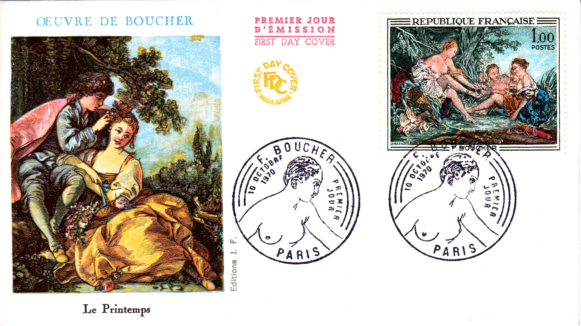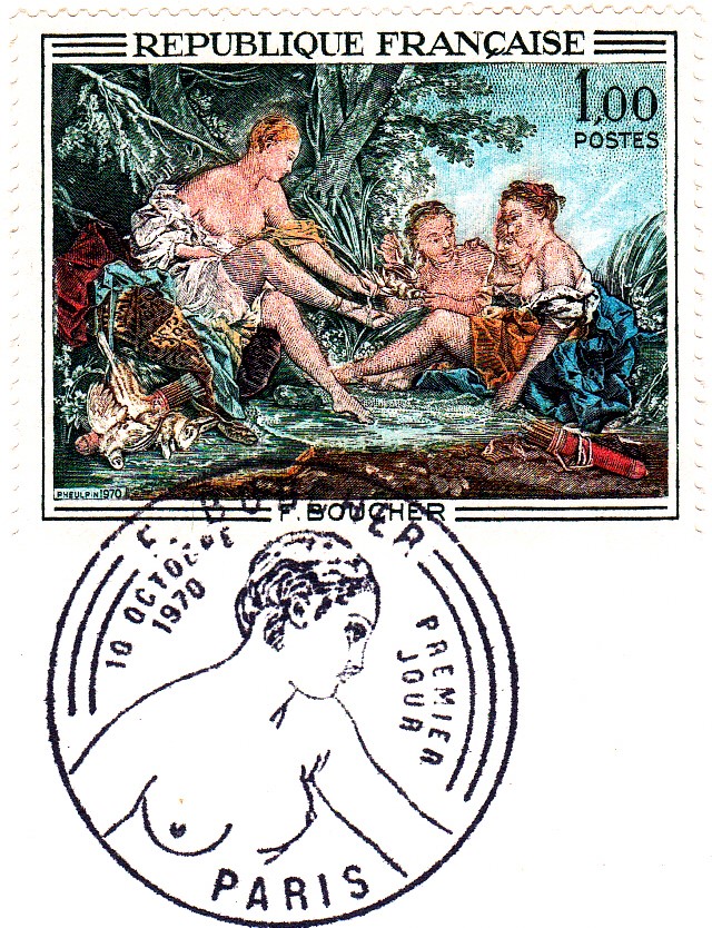 1970 erschien in Frankreich eine Marke (MiNr 1725) mit seinem Gemälde "Dianas Rückkehr von der Jagd". Hier ein Exemplar auf einem Brief von Straßburg nach Ludwigshafen.