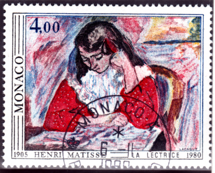 Die Marke Monaco MiNr 1439 zeigt sein Werk "Lesende Marguerite".