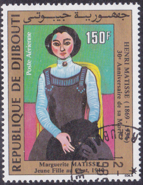 Zum 30. Todestag von Henri Matisse erschien in Dschibuti eine Marke (MiNr 399) mit dem Gemälde "Mädchen mit Katze" von Henri Matisse.
