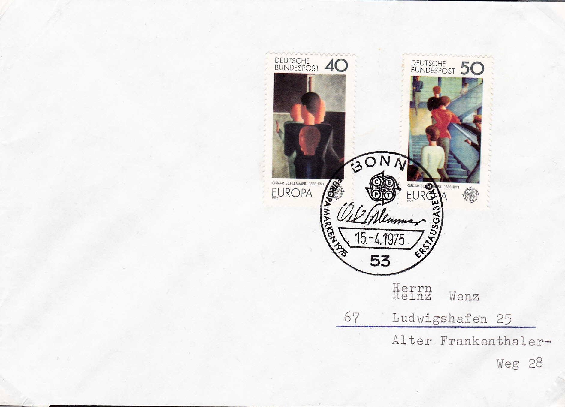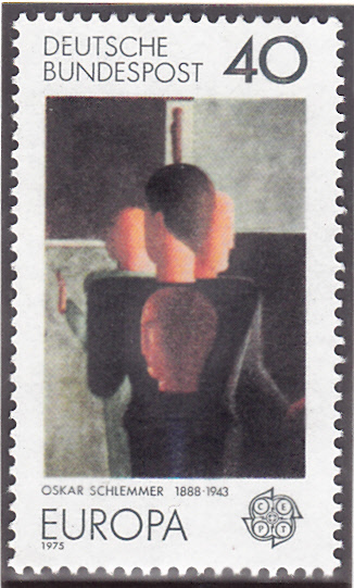 Die Europamarle zu 40Pf von 1975 zeigt Schlemmers Gemälde "Konzentrische Gruppe".