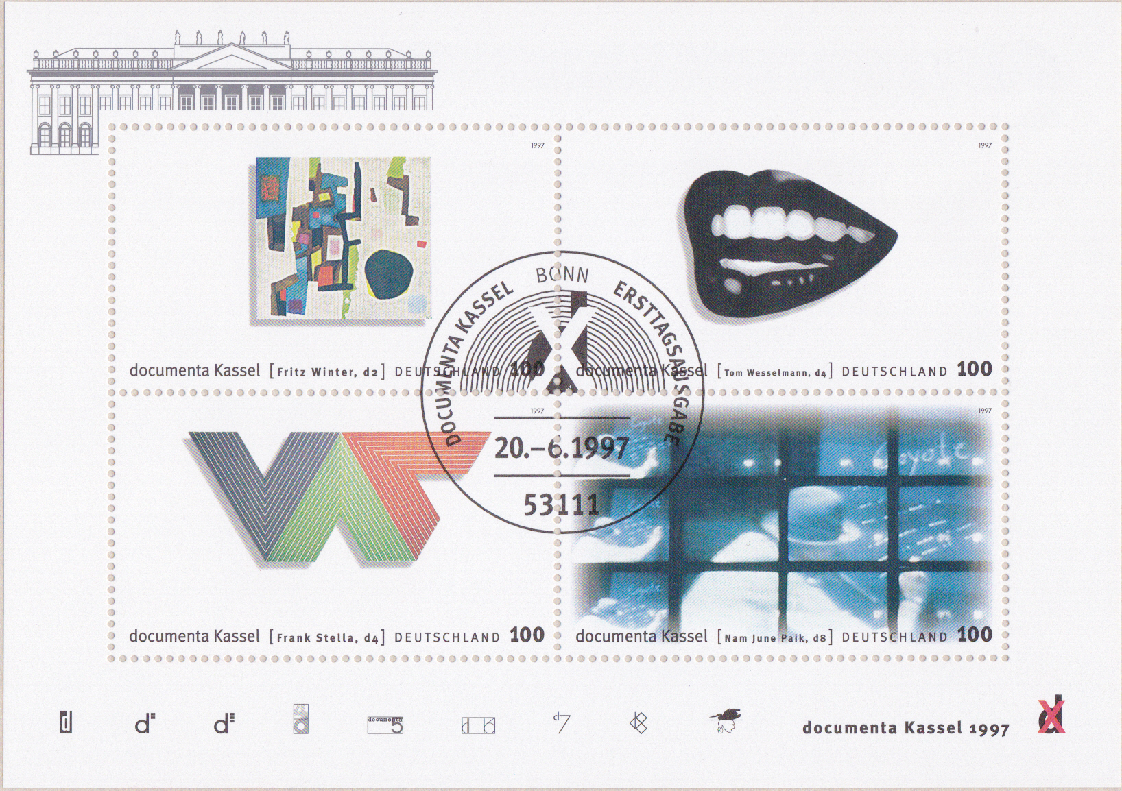 Der Block zur 10. documenta in Kassel (MiNr Block 39) enthält insgesamt vier Marken.