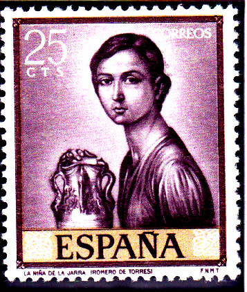 Auf der Marke zu 25 CTS MiNr 1536 ist das Gemälde "Das Mädchen mit dem Wasserkrug" von Julio Romero de Torres abgebildet.