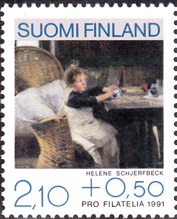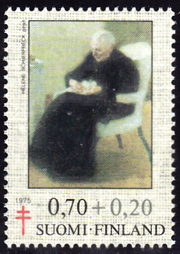 In einer Serie zur "Bekämpfung der Tuberkulose" erschien in Finnland diese Marke (MiNr 773) mit dem Gemälde "Zu Hause" von Helene Schjerfbeck.