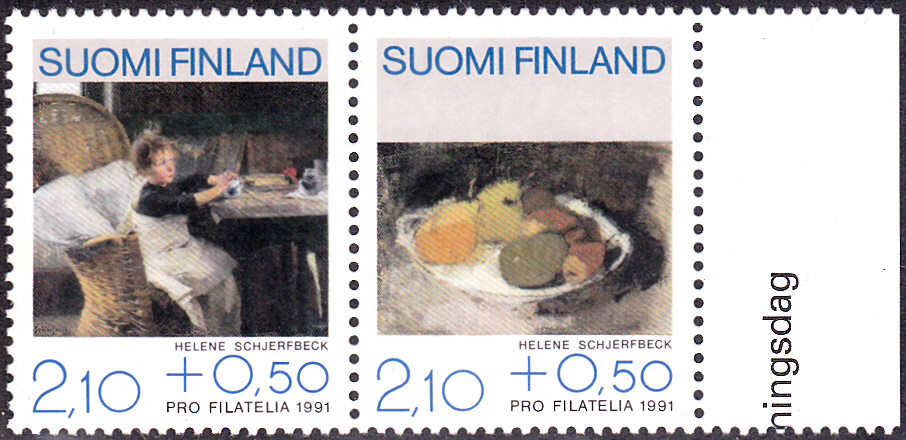 Auf einer Marke zur Förderung der Philatelie (MiNr 1132) ist das Gemälde "Stilleben in Grün" von Helene Schjerfbeck abgebildet.