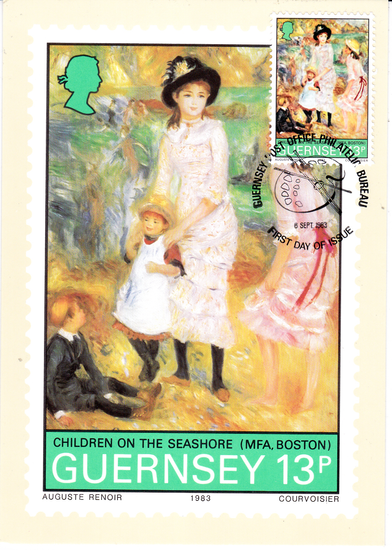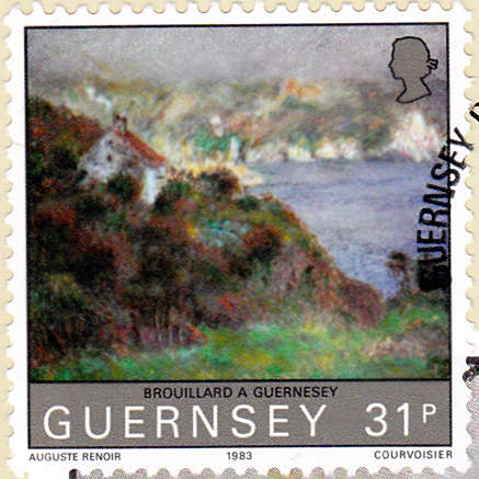 Mit der fünften Marke (MiNr 273) ist die Serie komplett. Sie zeigt das Gemälde "Nebel auf Guernsey" von Auguste Renoir.