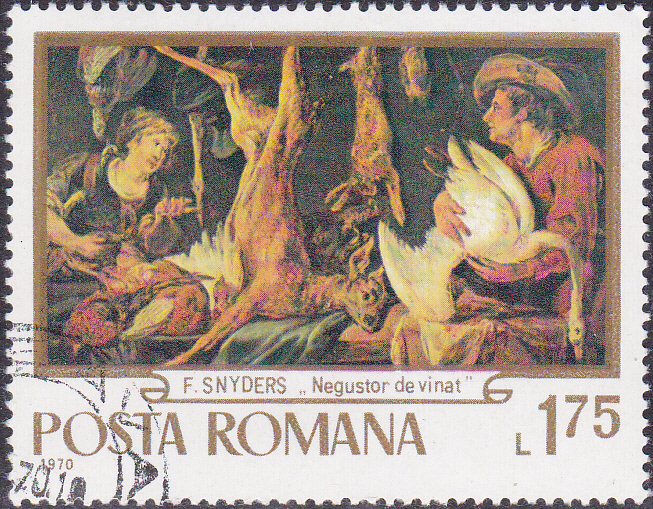 In einer Serie "Gemälde mit Jagdmotiven" ist in Rumänien diese Marke (MiNr 2880) mit dem Gemälde "Wildbrethändler" von Frans Snyders erschienen.