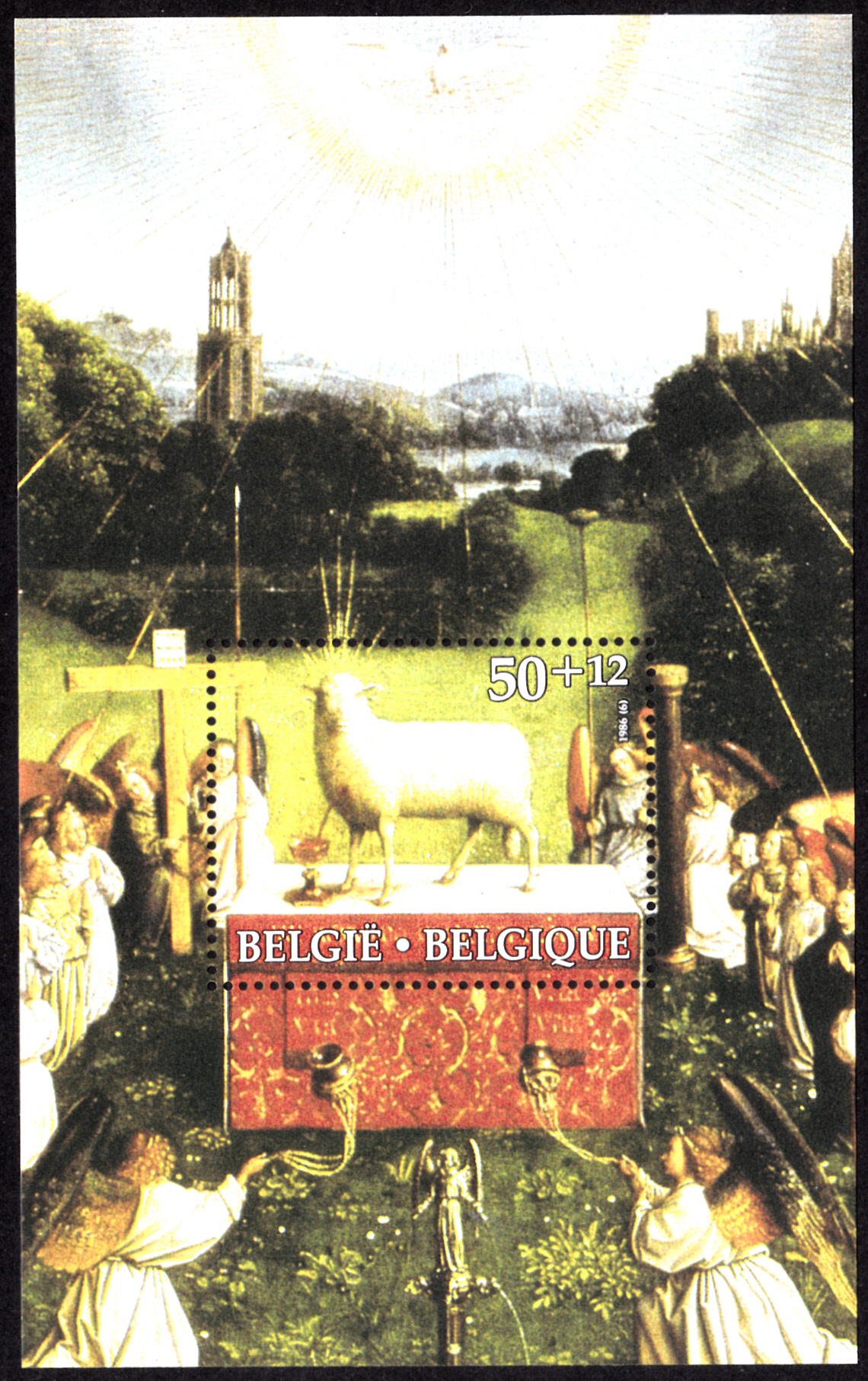 Zum Jubiläum "50 Jahre Internationaler Büchereiverband (IFLA)" ist in Belgien eine Marke (MiNr 1914) mit einem Detail des Genter Altars (15. Jh.) der Gebrüder Jan und Hubert van Eyck erschienen.