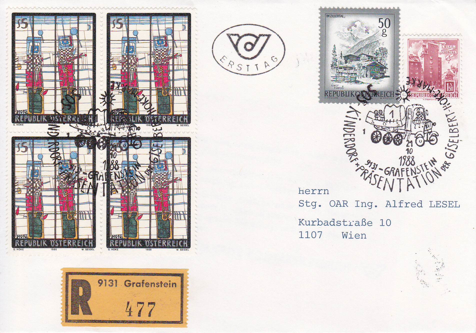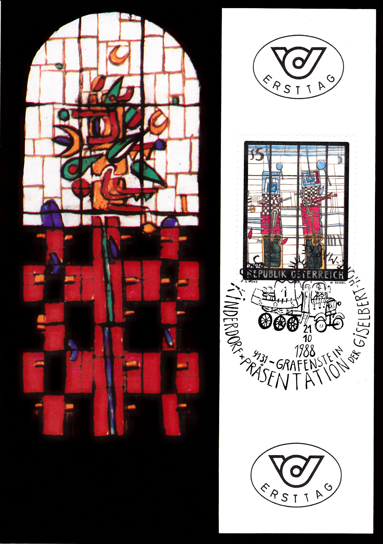 FDC mit dieser Marke und einem Sonderstempel mit der Kennziffer "1" aus Grafenstein zur Präsentation der Marke.