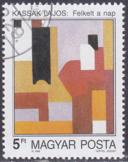 In einer Serie "Moderne Malerei" erschien in Ungarn dieser Marke (MiNr 4057 A) mit dem Gemälde "Die Sonne ist aufgegangen" von Lajos Kassák.