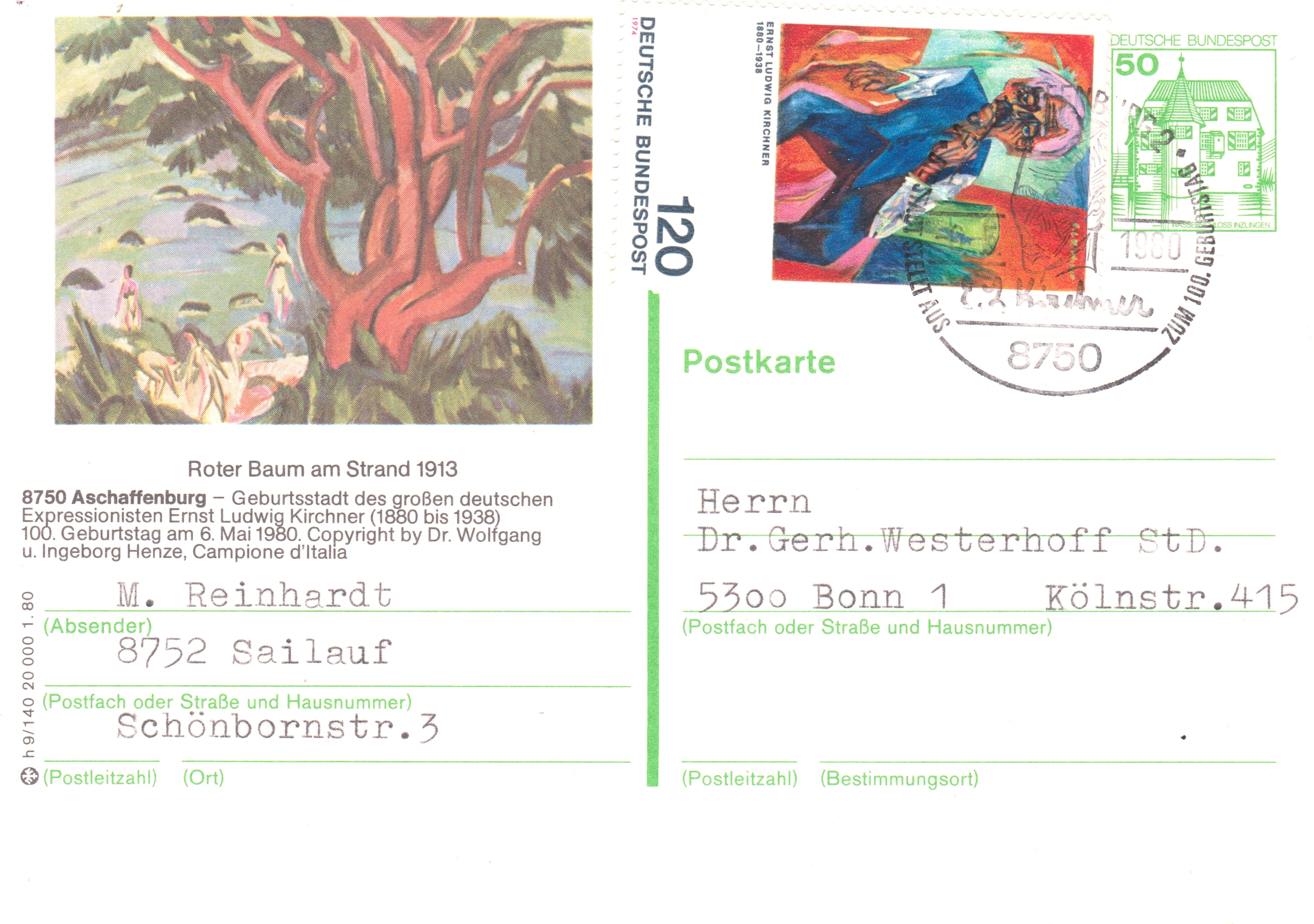 Ganzsache mit Zusatzfrankatur, entwertet per Sonderstempel zum 100. Geburtstag: