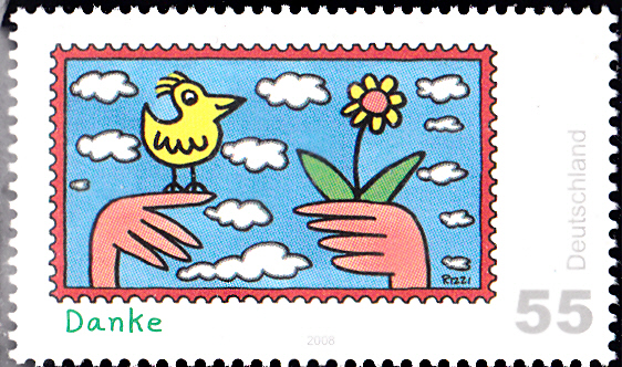 Auf der vierten Marke (MiNr 2663) wird ein Motiv zum Thema "Danke" gezeigt.