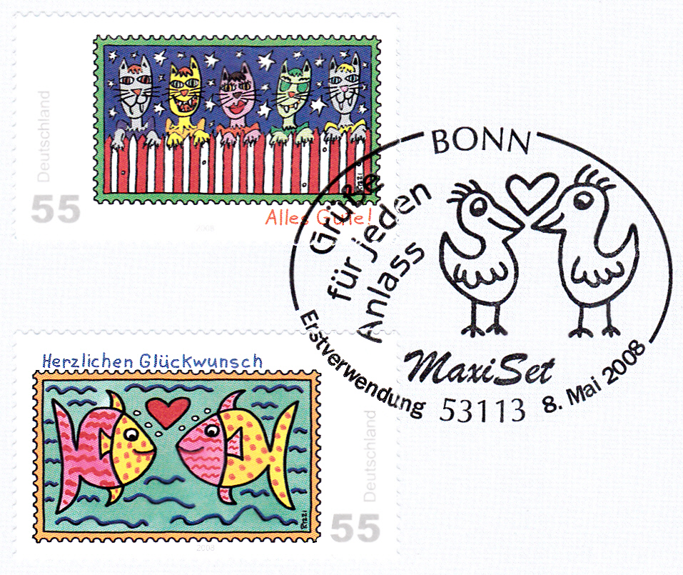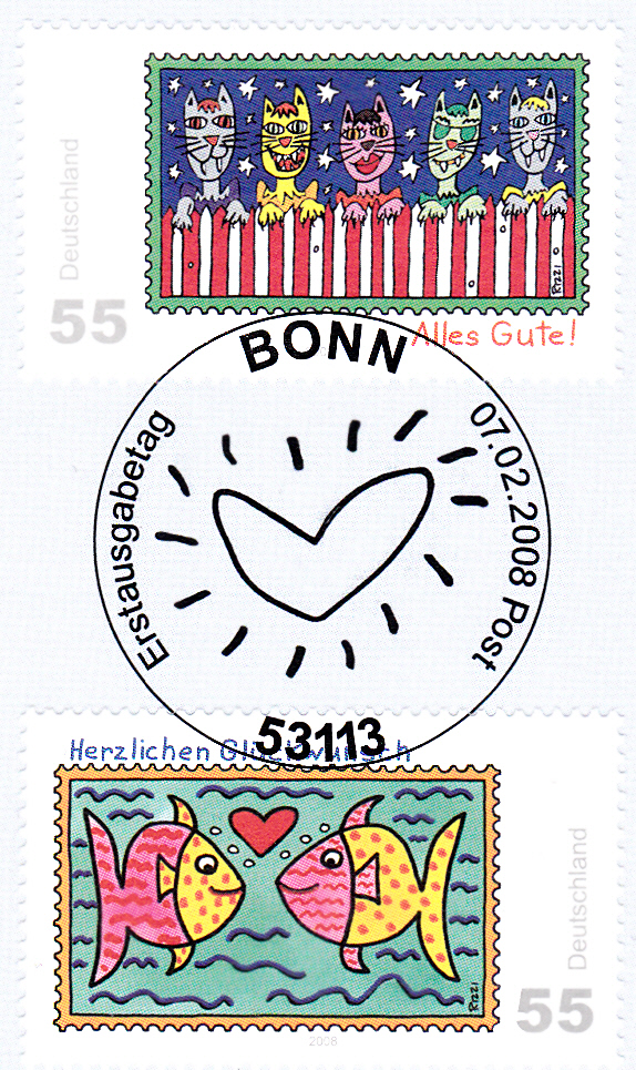 Zu dieser Serie gehört auch die Europamarke 2002 (MiNr 2662) mit dem Motiv "Herzliche Grüße".
