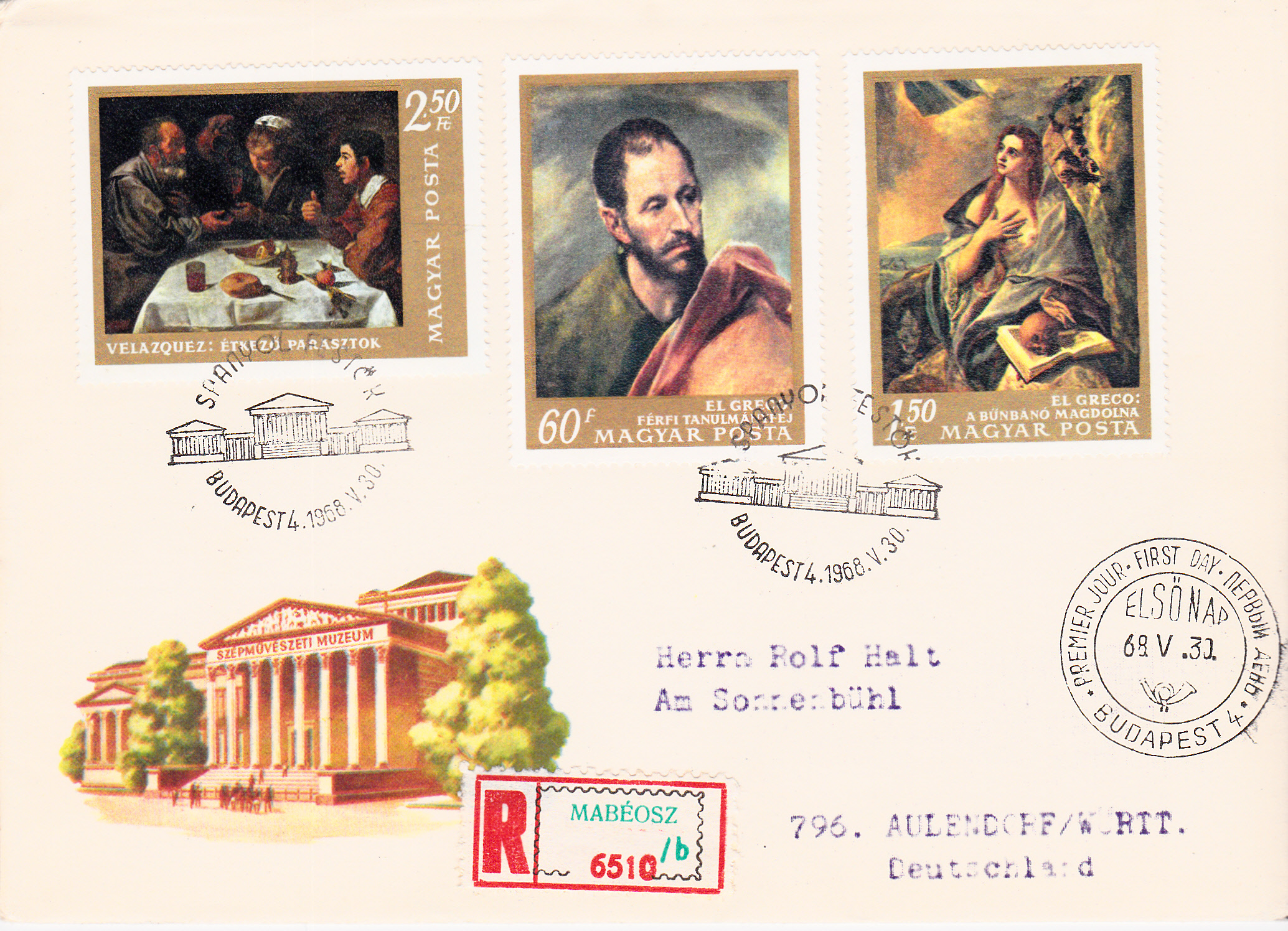Die Marke wurde auf einem Einschreibebrief verklebt und am Ersttag mit dem Ersttagsonderstempel entwertet.