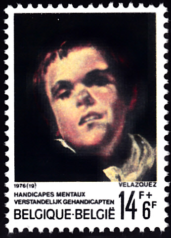Auf einer Marke aus Belgien (MiNr 1888) zum Thema "Nationale Vereinigung für Hilfe an geistig Behinderten" wird ein Detail mit einem geistig behinderten Kind aus einem Gemälde von Diego Rodriguez de Silva y Velázquez gezeigt.