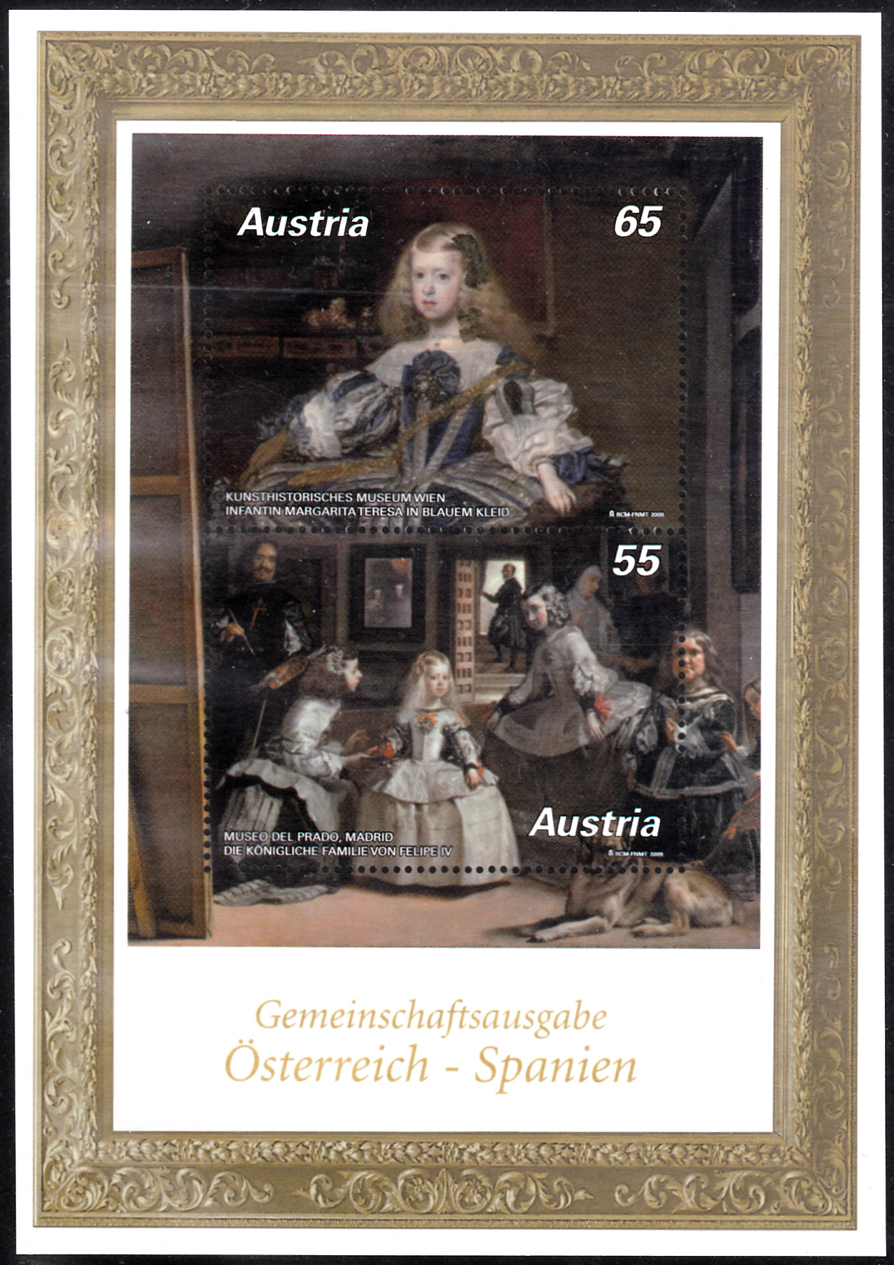 Auch eine Marke aus Spanien zeigt das Gemälde "Die königliche Familie von Felipe IV." von Diego Velázquez und ist bleich zu Österreich (MiNr 2837).