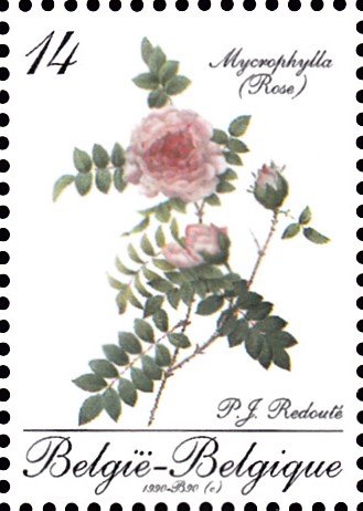 In Belgien erschienen im Jahre 1988 zur Förderung der Philatelie zwei Zuschlagsmarken mit der Abbildung von Rosen aus dem Werk "60 Rosen für eine Königin" von Pierre-Joseph Redouté.