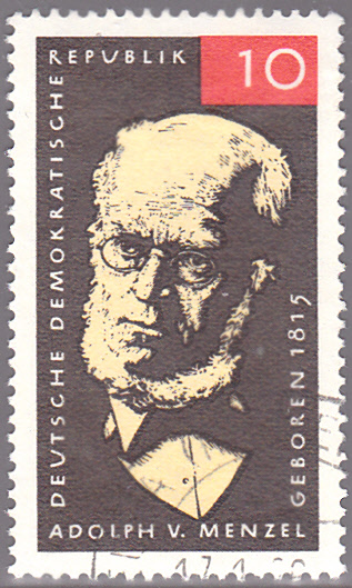 Zum 150. Geburtstag von Adolph von Menzel ist an seinem Geburtstag am 8. 12. 1965 in der DDR eine Marke (MiNr 1146) eine Marke mit ebenfalls einem Porträt von ihm.