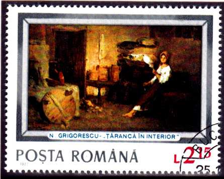 Dieses Gemälde ist mit dem Namen "Spinnerin" benannt und auf der Marke Rumänien MiNr 3407 zu sehen.