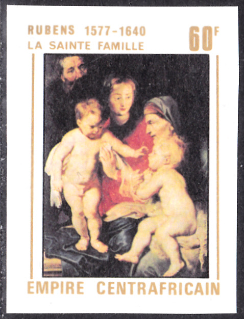 In der Zentralafrikanischen Republik ist in einer Serie zum 400. Geburtstag von Peter Paul Rubens eine Marke (MiNr 527) mit Detail aus dem Gemälde "Die Heiligen Familie mit St. Elisabeth und dem Säugling Johannes des Täufers" von P. P. Rubens.