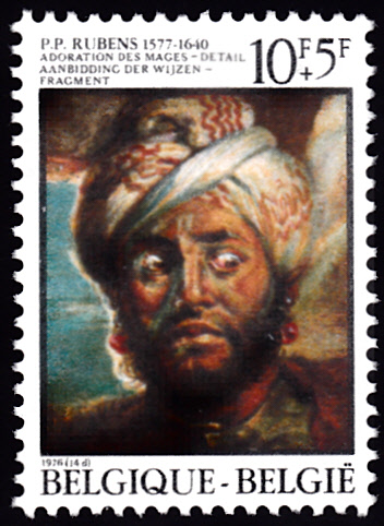 Zum 400. Geburtstag von Peter Paul Rubens ist in Belgien eine Serie erschienen. Hier die Marke zu 4,50 Fr + 1,50 Fr (MiNr 1868). Laut Text auf der Marke und der Angabe im Michel (Hl. Christophorus (Detail aus „Kreuzabnahme“)) soll ein Detail aus dem Gemälde "Kreuzabnahme" von Peter Paul Rubens gezeigt werden. Es ist aber ein Detail aus dem Gemälde "Der hl. Christophorus" von Peter Paul Rubens.