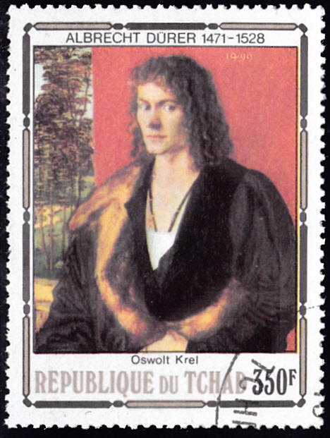 Zum 450. Todestag von Albrecht Dürer sind im Tschad vier Marken erschienen. Auf der Marke zu 60Fr (MiNr 831) sehen wir Dürers Gemälde "Bildnis eines jungen Mannes".