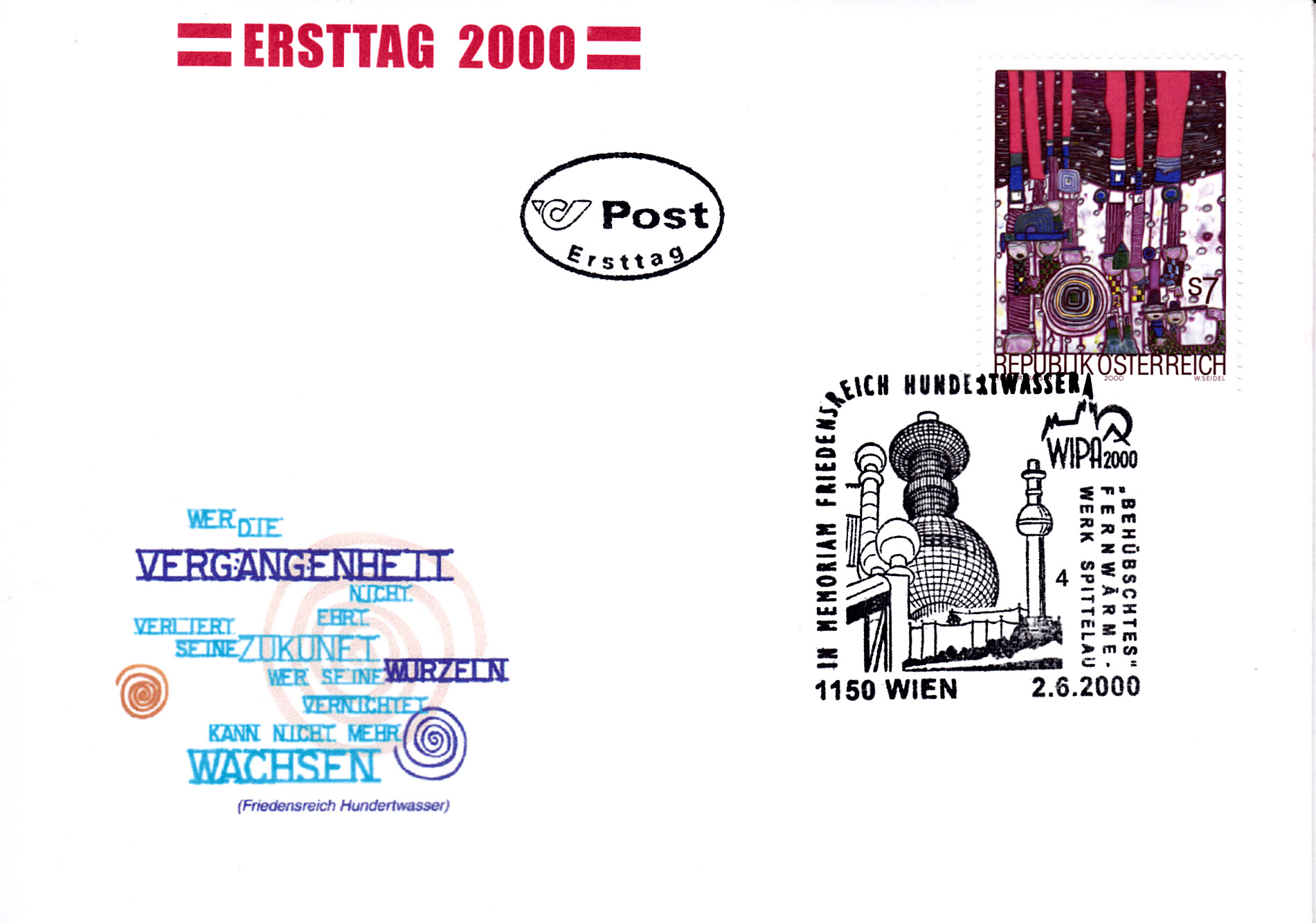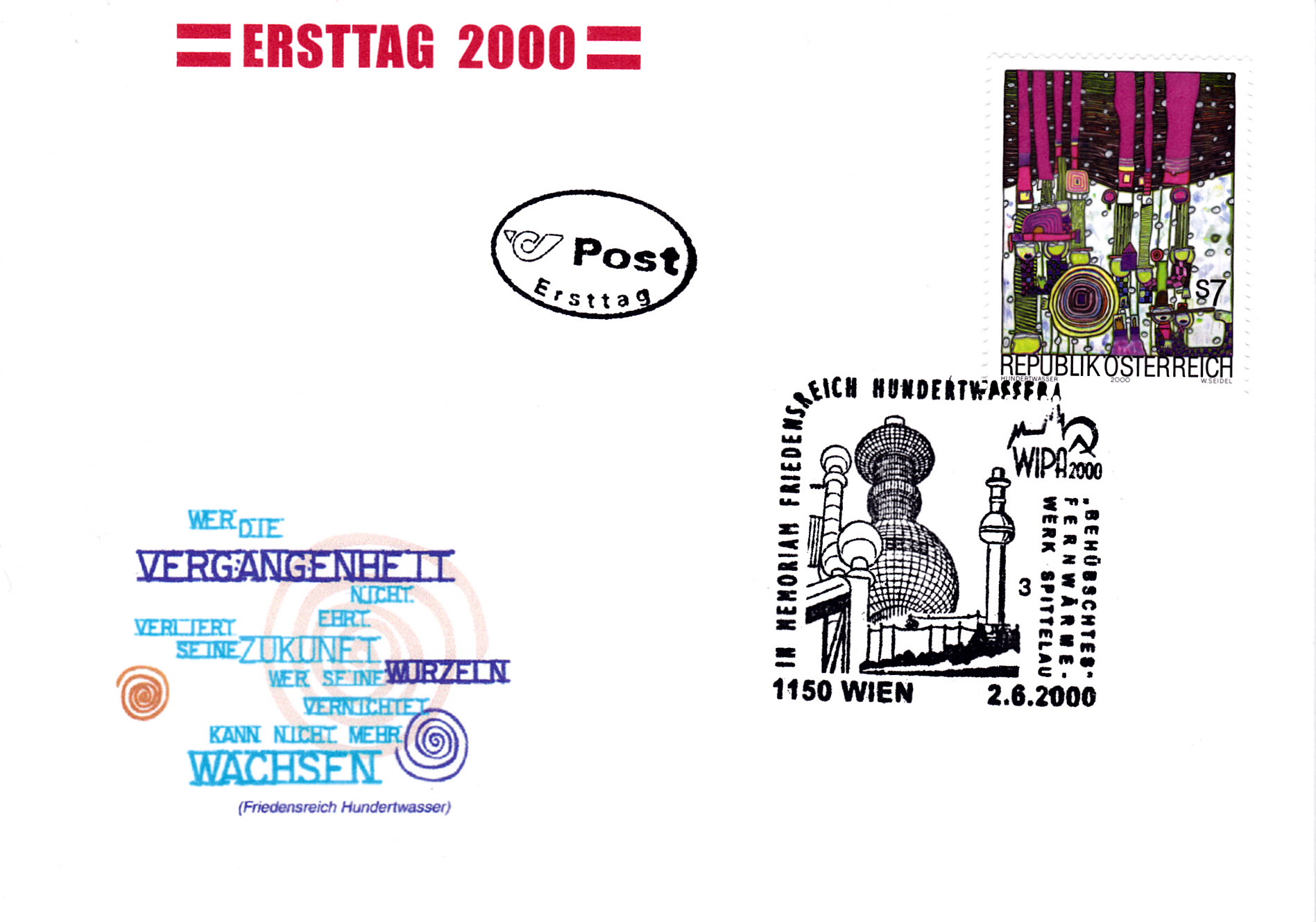 Aus Anlass "20 Jahre Kunst Haus Wien" gab es in Österreich eine Marke (MiNr 2917) mit der Abbildung Kunst Haus Wien nach einem Entwurf von Friedensreich Hundertwasser.