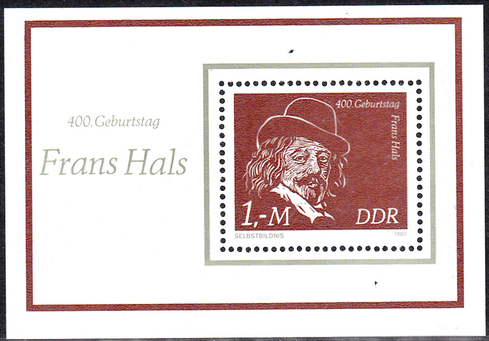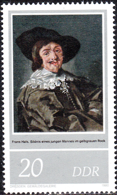 Zu der von MathiasH erwähnten Markenserie der DDR zum 400. Geburtstag von Frans Hals gehört auch diese Marke zu 20Pf (MiNr 2544) mit der Abbildung des Gemäldes "Bildnis eines jungen Mannes im gelbgrauen Rock".