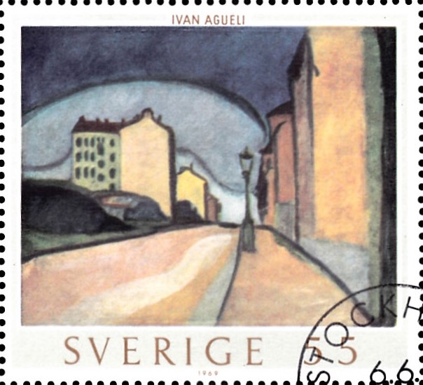 Zum 100. Geburtstag von Ivan Aguéli ist in Schweden in einem Block diese Marke (MiNr 642) mit dem Titel "Stockholmsutsikt" ("Blick auf Stockholm") erschienen.