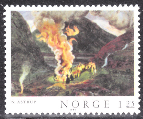 In Norwegen ist eine Marke (MiNr 823) erschienen mit dem Gemälde "Jonsokbål" von Nikolai Astrup.