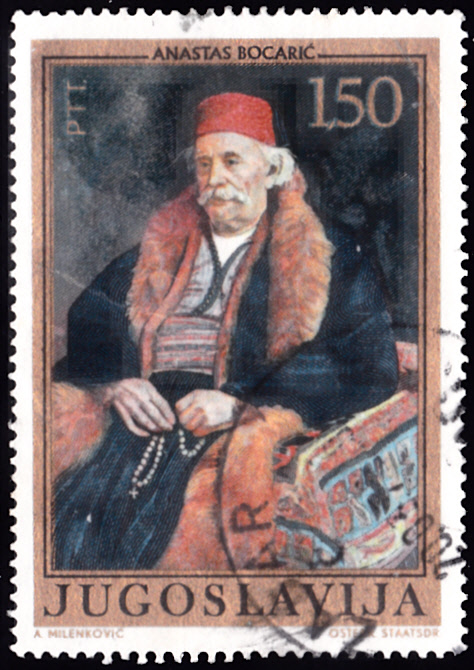 Auf einer Marke aus Jugoslawien (MiNr 1439) wird das Porträt "Kaufmann Ivanisevic aus Mostar" von Anastas Bocarić gezeigt.