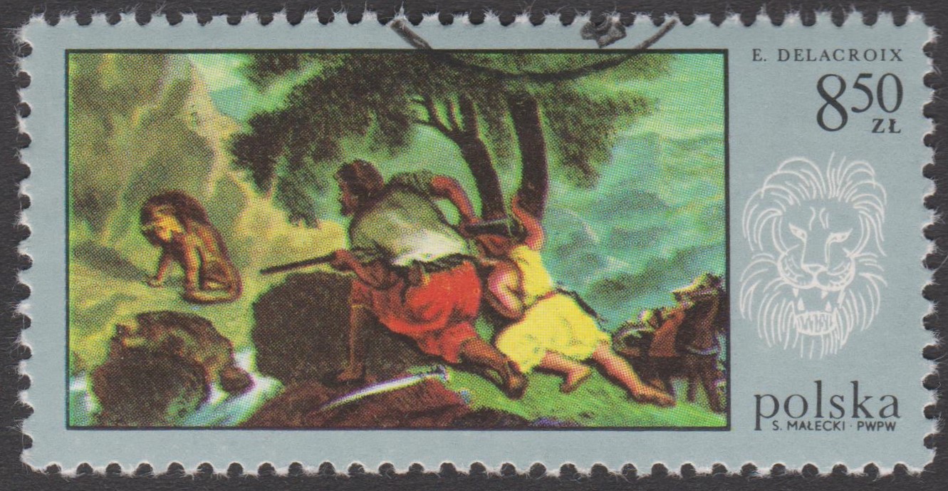Polen MiNr. 1897 zeigt das Gemälde "Löwenjagd in Marokko" von Eugène Delacroix: