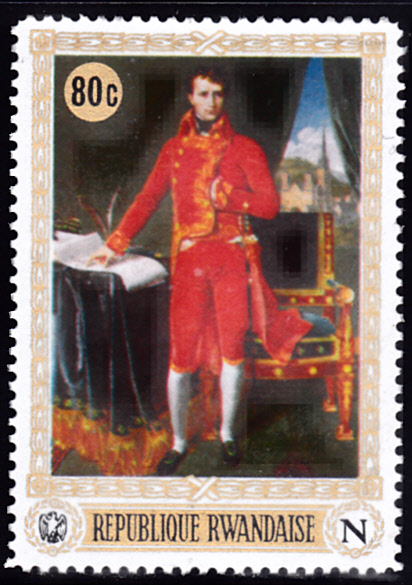 In einer Serie zum 200. Geburtstag von Napoleon I. ist in Ruanda eine Marke (MiNr 354 A) mit dem Gemälde "Napoleon als Erster Konsul" von Jean-Auguste-Dominique Ingres.