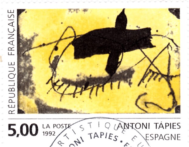 Aus Frankreich kommt diese Marke (MiNr 2930) mit einem Abstrakten Gemälde von Antoni Tapies.