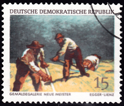 In der DDR ist eine Marke (MiNr 1394) mit dem Gemälde "Mähende Bergbauern" von Albin Egger-Lienz erschienen. Dieses Motiv gibt es in verschiedenen Fassungen.